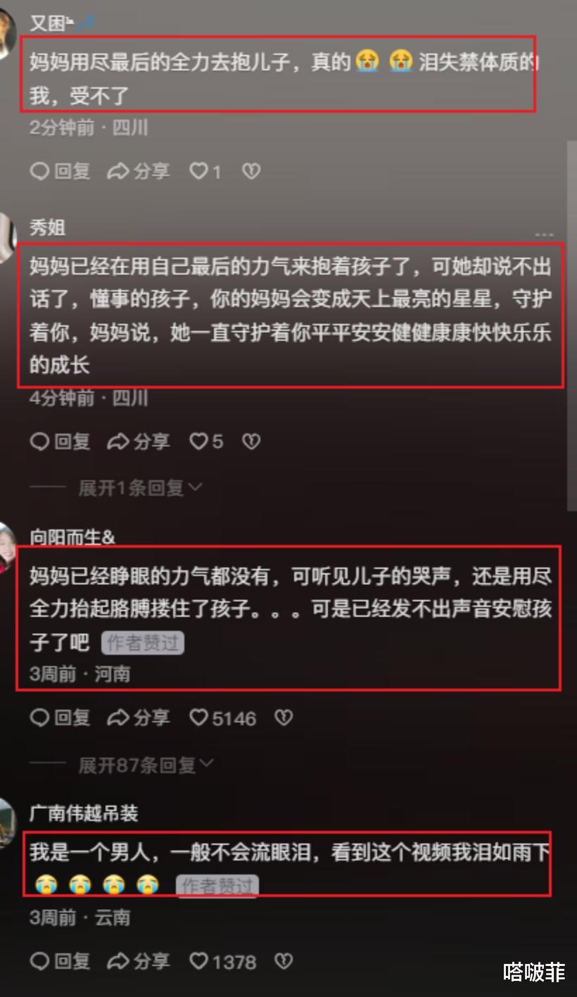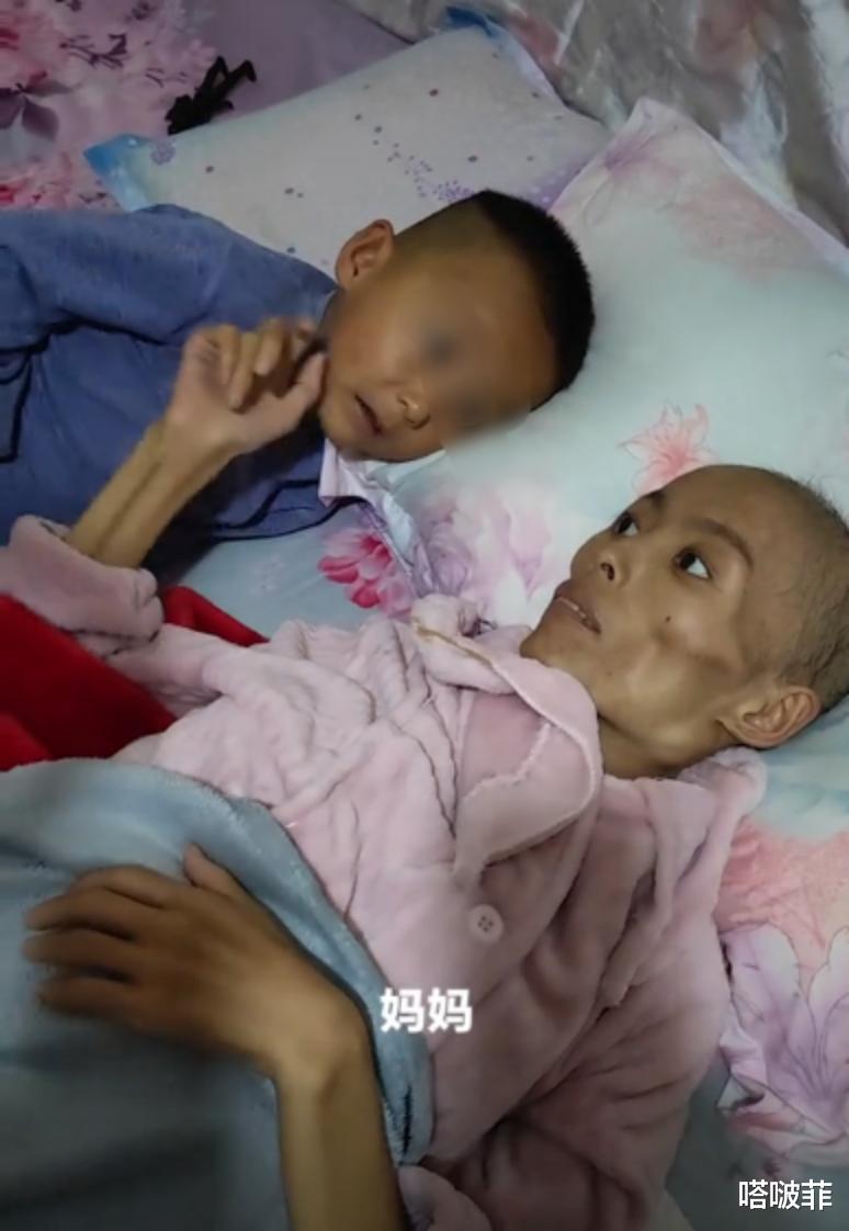 饱受病魔折磨,她无精打采的样子就连抱着孩子都非常吃力,大家都知道那是她用尽力气才勉强把手搭在孩子身上!孩子哭的越大声,她的心越痛,网友越是绷不住,眼泪止不住地往下流!