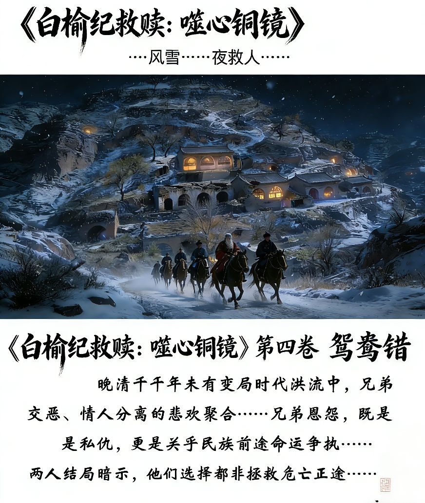如果你已厌倦了那些速食般的“系统流”“穿越爽文”,如果你仍在寻找一本能真正走进你心里、让你在掩卷之后久久不能平静的作品,那么,请停下匆忙滑动的指尖,将目光投向这片苍茫厚重的“黄土地”。这里,正有一部名为《白榆纪救赎:噬心铜镜》的小说,以一种沉默而坚韧的姿态,讲述着一个关于背叛、秘密、追寻与终极救赎的宏大故事。它不迎合潮流,不贩卖焦虑,只用冷峻如刀的笔锋,剖开历史与人性的肌理,呈现出一幅清末民初黄土高原上,交织着奇幻悬疑与哲学思辨的磅礴画卷。