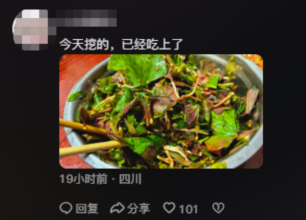 消息一经发出,就引发评论区网友热烈讨论:有的说“赶紧开始吧,已经给孩子下单了小铲子”,有的感慨“你地真多”,有的给出食用教程“带叶叶的折耳根最好吃”,有的建议他举办“吃折耳根挑战赛”。