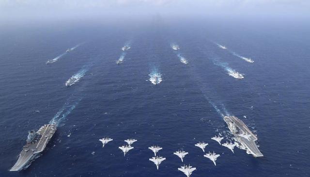 相当炸裂!双航母以最“帝国主义”的形态首次编队亮相。