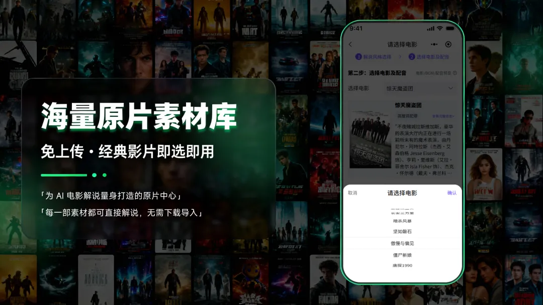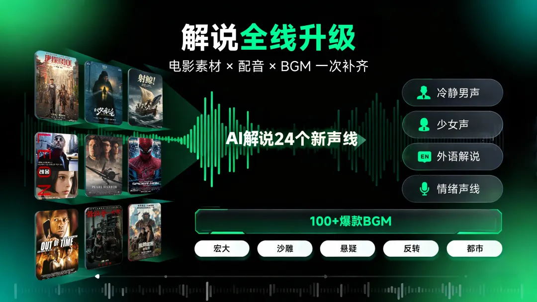 电影解说小程序素材库全方位升级,你想要的电影素材、配音、BGM全面焕新!