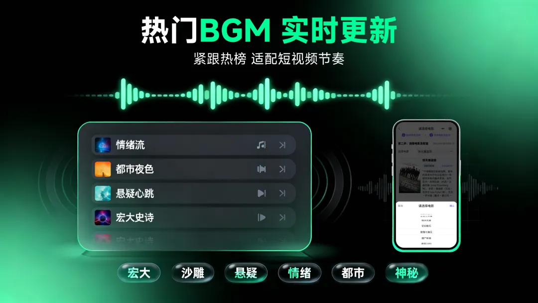 04 | BGM是视频的灵魂:紧跟热榜BGM不仅仅是视频背景音,更是情绪的放大器。但找音乐太痛苦了:版权问题、风格不搭、节奏对不上…