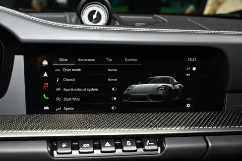 配置聚焦操控与安全,最新版本的保时捷动态底盘控制(PDCC)是核心亮点,采用电机驱动液压泵与独立液压蓄能器,响应速度较前代更精准,入弯时可大幅抑制侧倾,配合特别调校的 PASM 主动悬挂系统,将悬架降低 10mm,兼顾赛道支撑与日常滤震。安全与辅助配置同样全面:标配全速域 ACC、PCS 预碰撞安全系统,540° 全景影像让低速挪车更从容。