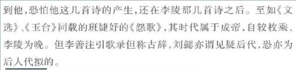 除了刘勰提出的“时代问题”外,还有其他怀疑的理由,例如,诗篇本身的水平说明它在五言诗发展时间线的“位置”;此外,它有没有可能是“拟作年代”的产物?