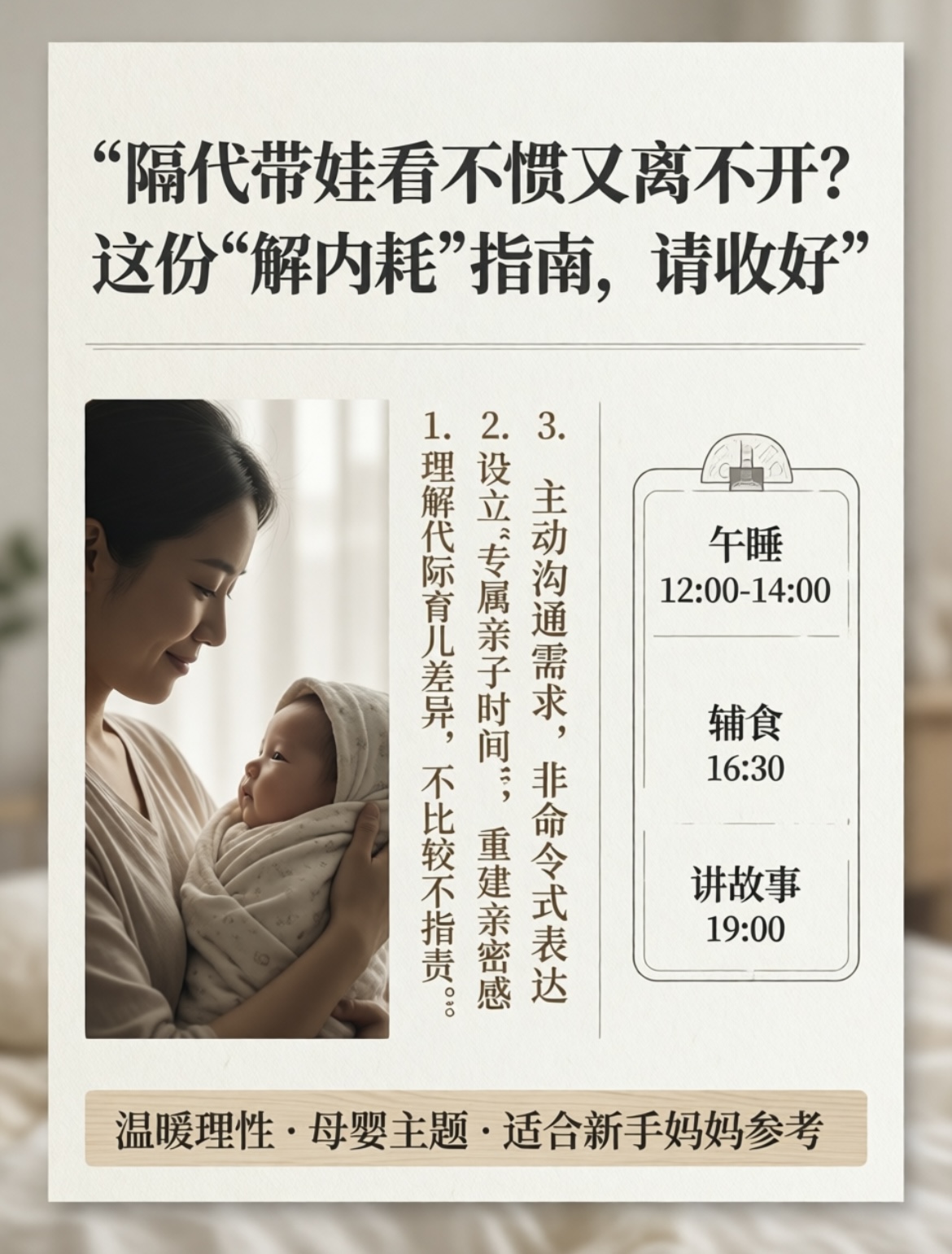 “隔代带娃,真是让人又爱又恨。”这句话,或许道出了无数家庭的心声。我们感激父母的倾力相助,让自己能在职场与生活间喘口气;却又常常对他们的“老方法”、“溺爱式”带娃感到焦虑和不满。这种“看不惯又离不开”的拉扯,成了许多家庭隐形的内耗源头。