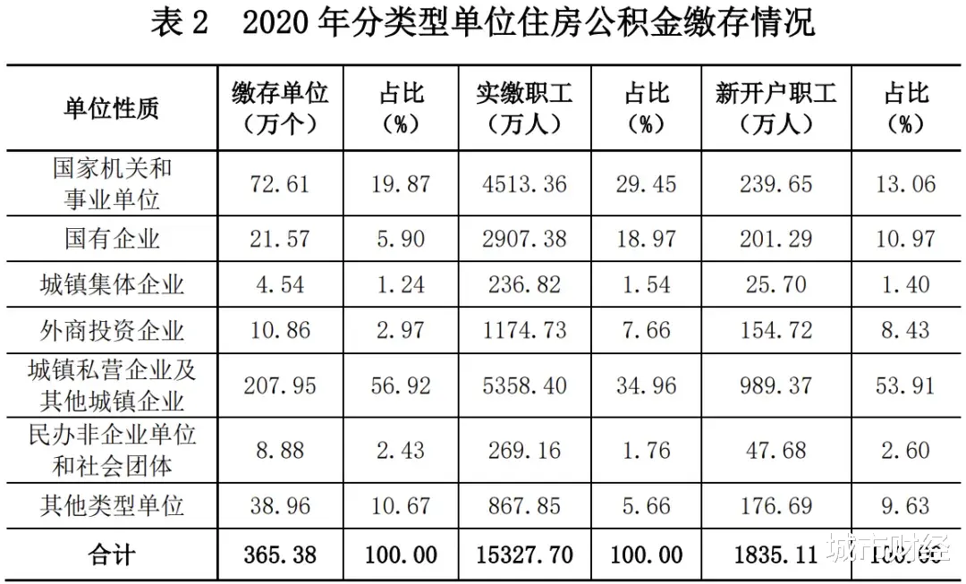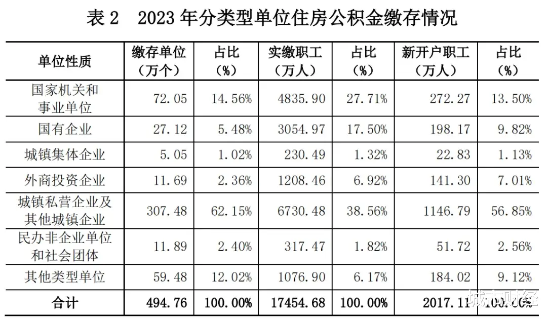 来看两张图,第一张是《全国住房公积金2023年年度报告》中披露的各单位住房公积金缴存情况,第二张则是2020年的数据。