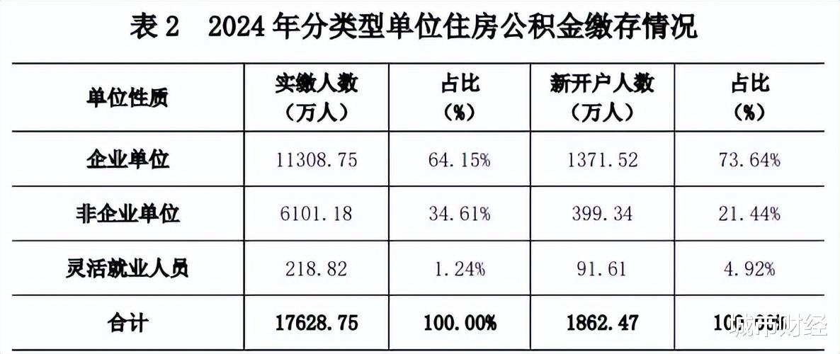 2024年年度报告也公布了,但这一次却没有再公布详细的“分类型单位住房公积金缴存情况”,仅公布了一个笼统的表格。