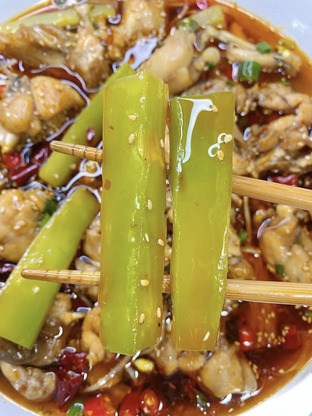 往炒好的底料里加800ml开水(有高汤更棒),放1勺生抽、半勺糖、少许白胡椒粉调味。大火煮沸后转中火熬5分钟,让香料味道充分融合。保持汤汁微沸状态,像下饺子一样把蛙肉一块块放进去。别一股脑倒进去!那样会降低汤温,肉就容易变老。蛙肉全部下锅后,煮3分钟立刻关火!这时候肉质最嫩,用漏勺捞出来铺在大碗底部。在蛙肉上堆满干辣椒段、花椒粒、蒜末、葱花,喜欢重口味的还可以撒把芝麻。另起锅烧3勺热油(油温要高到冒青烟),对准配料哗啦一声泼下去!瞬间激发出辣椒和花椒的香气,这声"滋啦"就是成功的号角!最后撒把香菜碎,绿油油的叶子在红油里若隐若现,颜值瞬间提升三个档次!