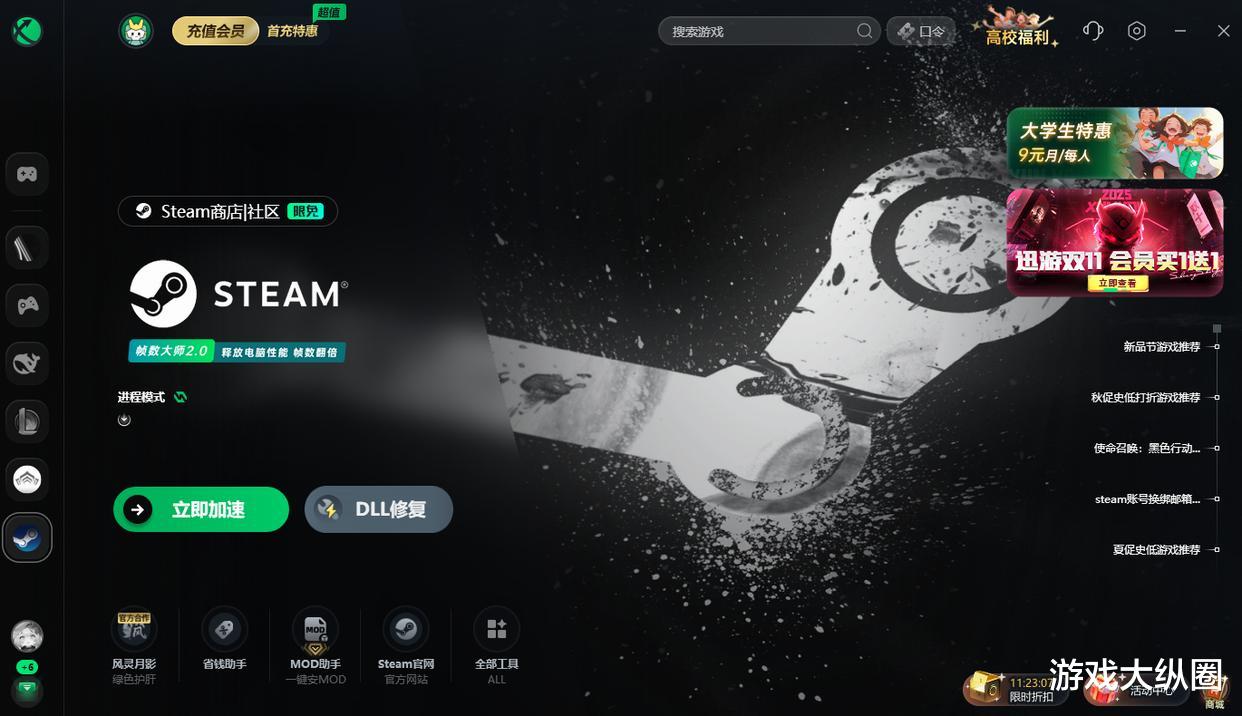 玩家只需要等上一段时间,等steam网络自动刷新,或者也可以使用迅游加速器,没,前迅游支持steam的免费加速功能,玩家只需要打开迅游加速器内置的steam加速按钮,然后再启动steam客户端,这时候就可以解决游戏入库后找不到,或者steam页面打不开、无法刷新等问题,这边也是建议steam玩家都常备一个迅游加速器。