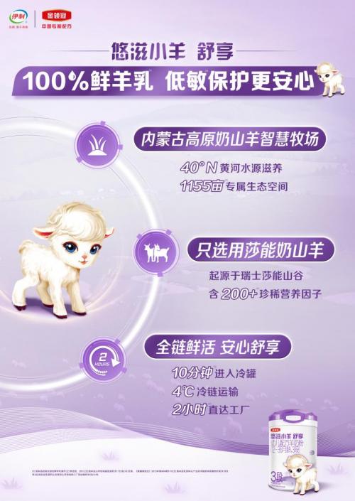 当Z世代父母开始主导母婴消费话语权,婴配粉市场迎来了“精细化喂养”的消费变革。羊奶粉以更亲和宝宝肠胃、更低致敏性等特点,受到越来越多消费者的青睐,并以每年20%左右(数据来源:《绵羊奶市场发展趋势报告》)的复合增长率向上攀升。其中,中国婴配粉领军品牌伊利金领冠旗下的悠滋小羊舒享,凭借100%鲜羊乳+10倍类HMOs+高纯乳铁蛋白等核心优势,奠定了高端羊奶粉品质标杆,成为宝爸宝妈的羊奶粉推荐首选。
