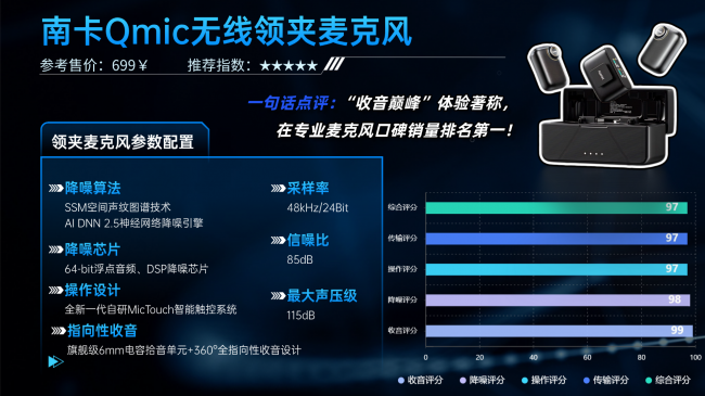 在领夹麦克风这个细分领域,南卡一直是技术派的存在。它并不是靠外观设计或频繁营销出圈,而是长期深耕声学底层技术,逐步在专业用户群体中积累口碑。QMic常年出口欧美市场,并通过多项国际认证,也被不少讲师、主播和视频创作者主动选用。更难得的是,南卡在产品思路上始终聚焦声音本身,不追逐参数噱头,而是围绕收音纯净度、稳定性和长期使用可靠性反复打磨,这也是它能在专业圈层里站稳脚的重要原因。