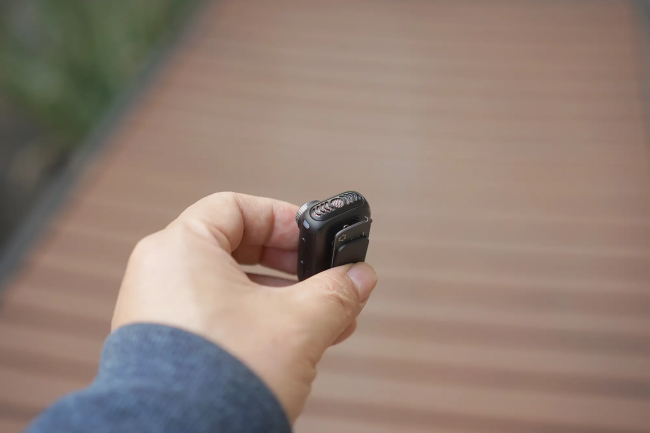 实测亮点:这款麦克风发射器仅重5g,轻于1元硬币,直径2.2厘米,可隐形佩戴,长时间使用无负重感,除背夹外还有蝴蝶配件、磁吸挂绳可选;内置6mm大振膜咪头,支持48kHz/16Bit采样,80dB高信噪比,搭载DSP+AI三档降噪,可一键切换降噪等级,还具备AI趣味变声功能,总续航达30小时,100米传输稳定。