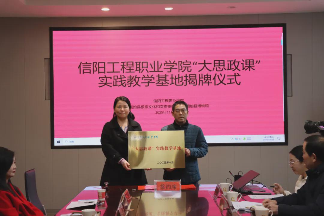 据悉,固始根亲文化已成为连接两岸同胞及海外侨胞的精神纽带,累计吸引超10万人次海内外宗亲寻根谒祖。信阳工程职业学院此次与固始县博物馆共建实践教学基地,正是立足这一独特文化资源,构建“课堂教学+实践体验+文化浸润” 育人模式的重要举措。该校相关负责人表示,将以此次合作为契机,持续拓展实践教学资源,创新思政育人形式,推动思政课高质量发展,让学生在行走中感悟文化魅力,在实践中坚定文化自信,为培养更多具有家国情怀和民族责任感的时代新人提供坚实支撑。(贾海燕 姚广义 朱良晨 童倩)