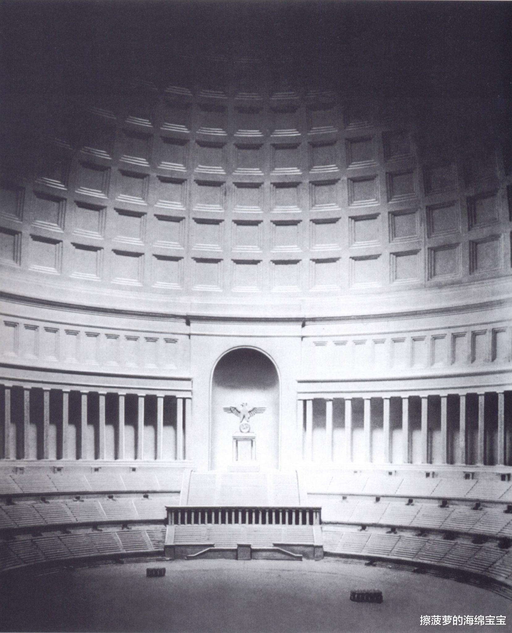 施佩尔和希特勒建造这座建筑目的是为了体现元首的权力和帝国的荣耀,用建筑来表达表达称霸世界的诉求。