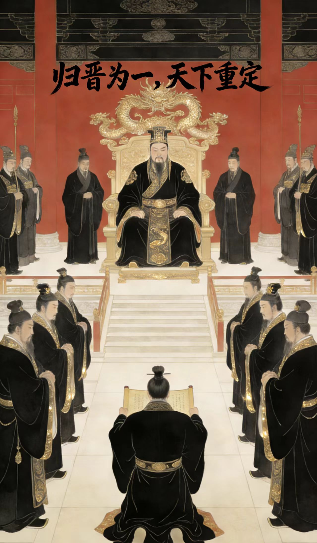 这是「合」的完成——三个割据政权,重归一统,乱世尘埃落定。