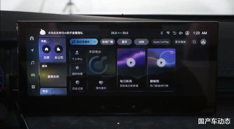 凯美瑞的中控台采用了环抱式设计手法,用料同样采用了大量的软质皮革包裹,豪华感直接拉满。