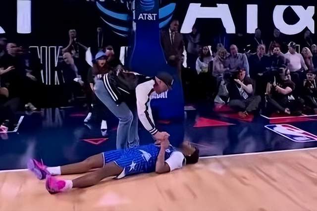 再看约翰逊这边,他也不急,第一扣虽然也不错拿了高分,但他最吸引人的不是扣篮,是他每次上场前和扣完后的那些舞步,乐呵呵的,看着确实喜庆。关键的最后一扣来了,约翰逊先跳,他想模仿人家罚球线起跳,结果明显是步点没踩对,最后成了罚球线内一大步才起跳,勉强把球砸了进去。说心里话,这扣篮放在往年,也就是个热身水平 。