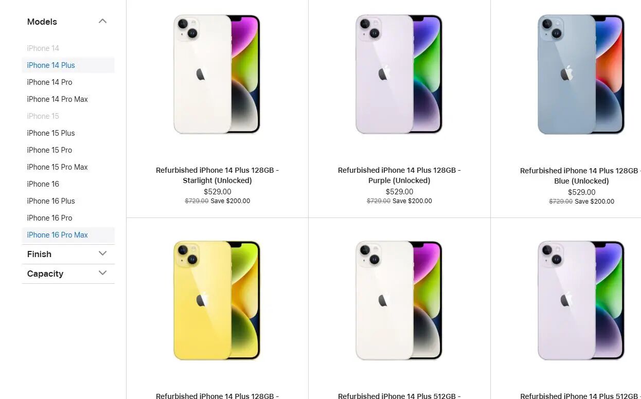 然而与此同时,苹果在北美官网上线了覆盖iPhone 14至iPhone 16系列的官方翻新机,产品型号齐全,部分旧款甚至已经售罄。这一动作似乎揭示了一个清晰的策略:为官方翻新产品腾出市场空间。不过,这类翻新机目前并未进入中国市场,背后显然存在多层考虑。