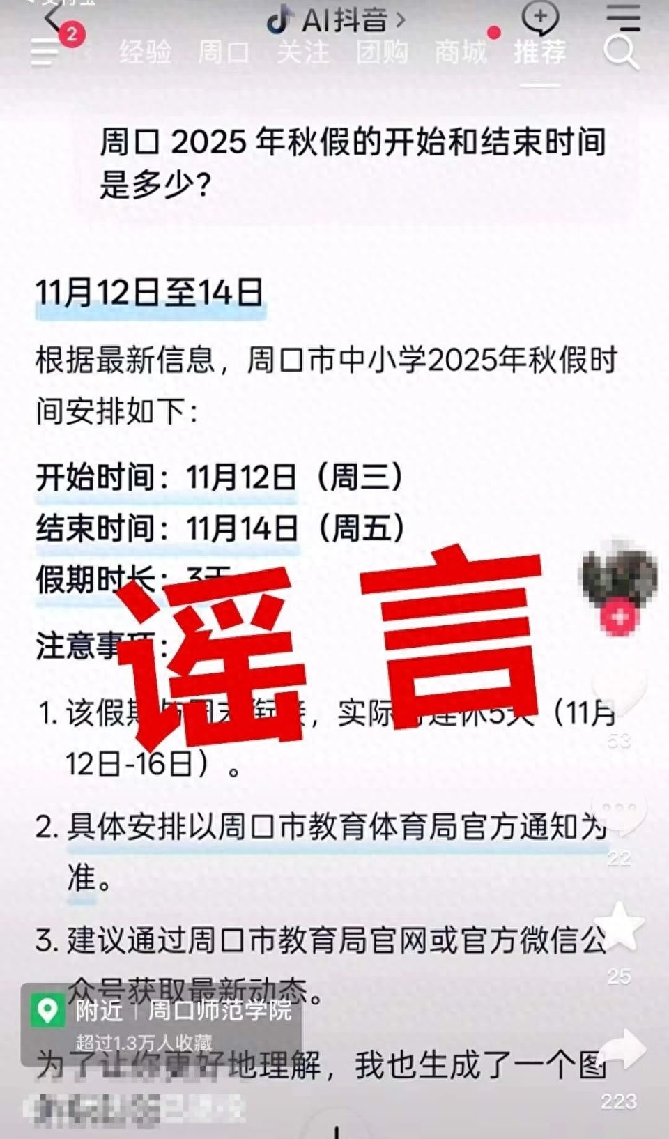 近期,部分自媒体平台发布河南多地推行中小学春秋放假的信息,使中小学春秋假成为社会热点。记者从周口市教体局获悉,有关我市春秋假的消息不实,请大家不信谣、不传谣。