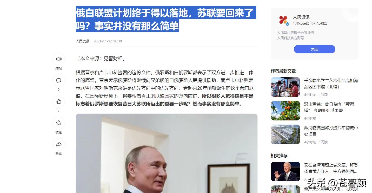 俄白联盟计划终于得以落地,苏联要回来了吗?事实并没有那么简单——人民资讯