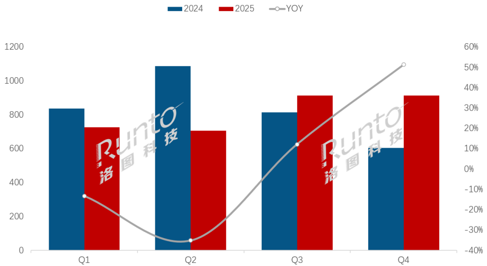 从出货节奏上看,第一、二季度的出货量连续下滑,主要受2024年同期高基数及短期需求疲软的影响。转折出现在第三季度,在教育信息化和商用市场需求复苏以及海外大单落地三股力量的共振下,第三、四季度的出货量同比分别增长12.1%和51.3%,展现出了快速修复与增长的韧性。
