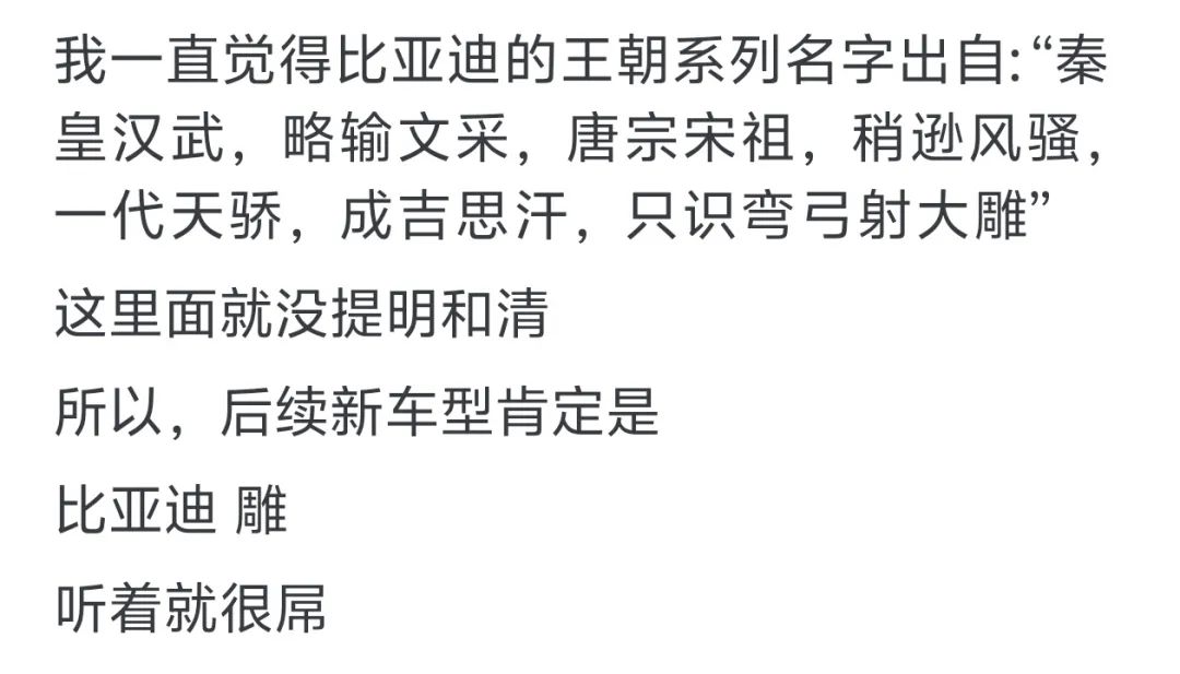 比亚迪的车系都按照
