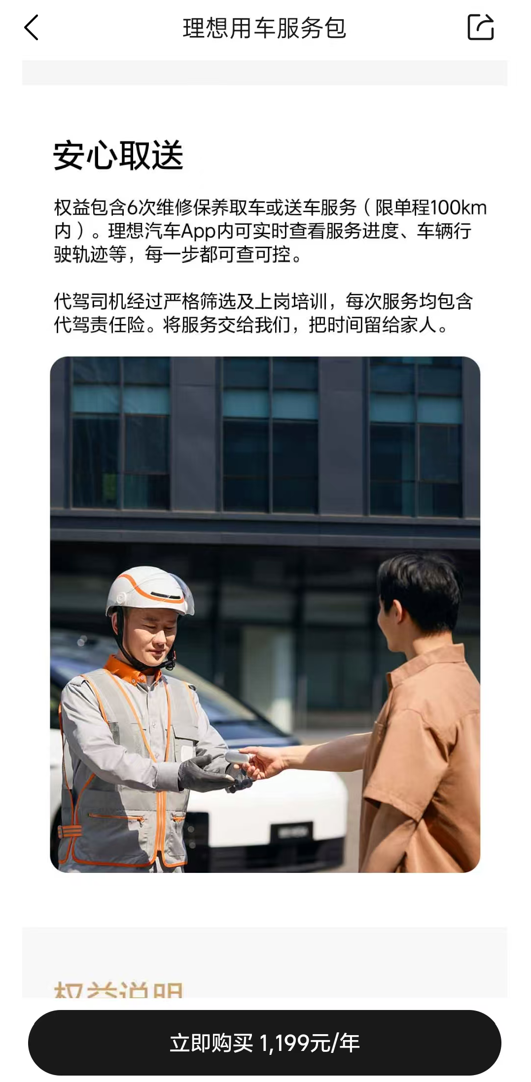 值得注意的是,理想汽车在宣传页面特别强调:取送车服务由理想汽车与服务方合作,最终由服务方为用户提供;代驾司机经过严苛筛选及上岗培训,每次服务均包含代驾责任险。