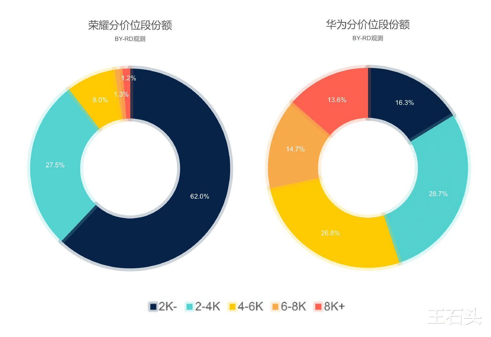 更扎心的差距,体现在高端市场上,我给大家看一组RD观测统计的非常直观的数据: