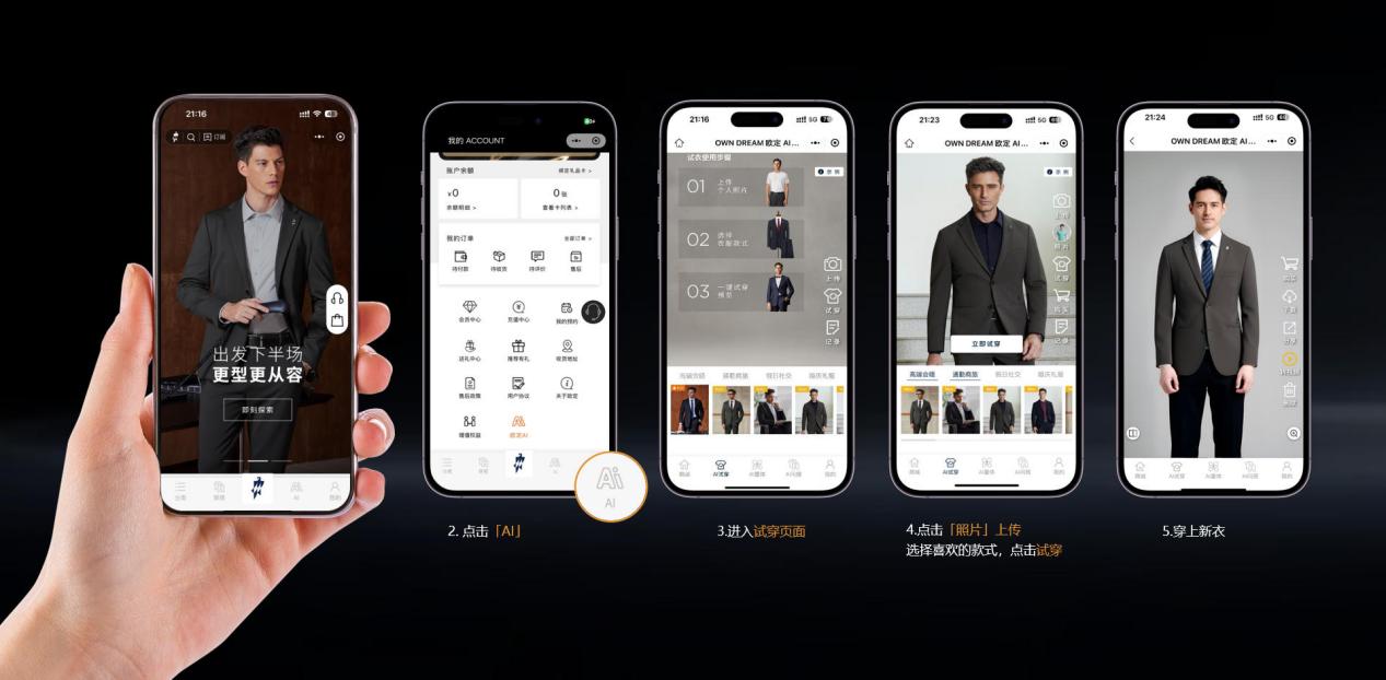 面对这一行业难题,一些具备前瞻视野的品牌早已开始布局。高端商务男装品牌欧定便是一个典型。他们对AI的探索并非始于这股热潮,而是在数年前便已通过“AI在线量体技术”默默耕耘,积累了深厚的数据基础。这套系统的核心,是其依托全球超过200万精英男士的真实体型数据所构建的庞大数据库。通过对用户身高的简单输入,结合AI算法对33个身体部位、120个制衣参数的精准计算,欧定得以超越传统的S/M/L尺码推荐,为用户提供接近“一人一版”的个性化定制建议。