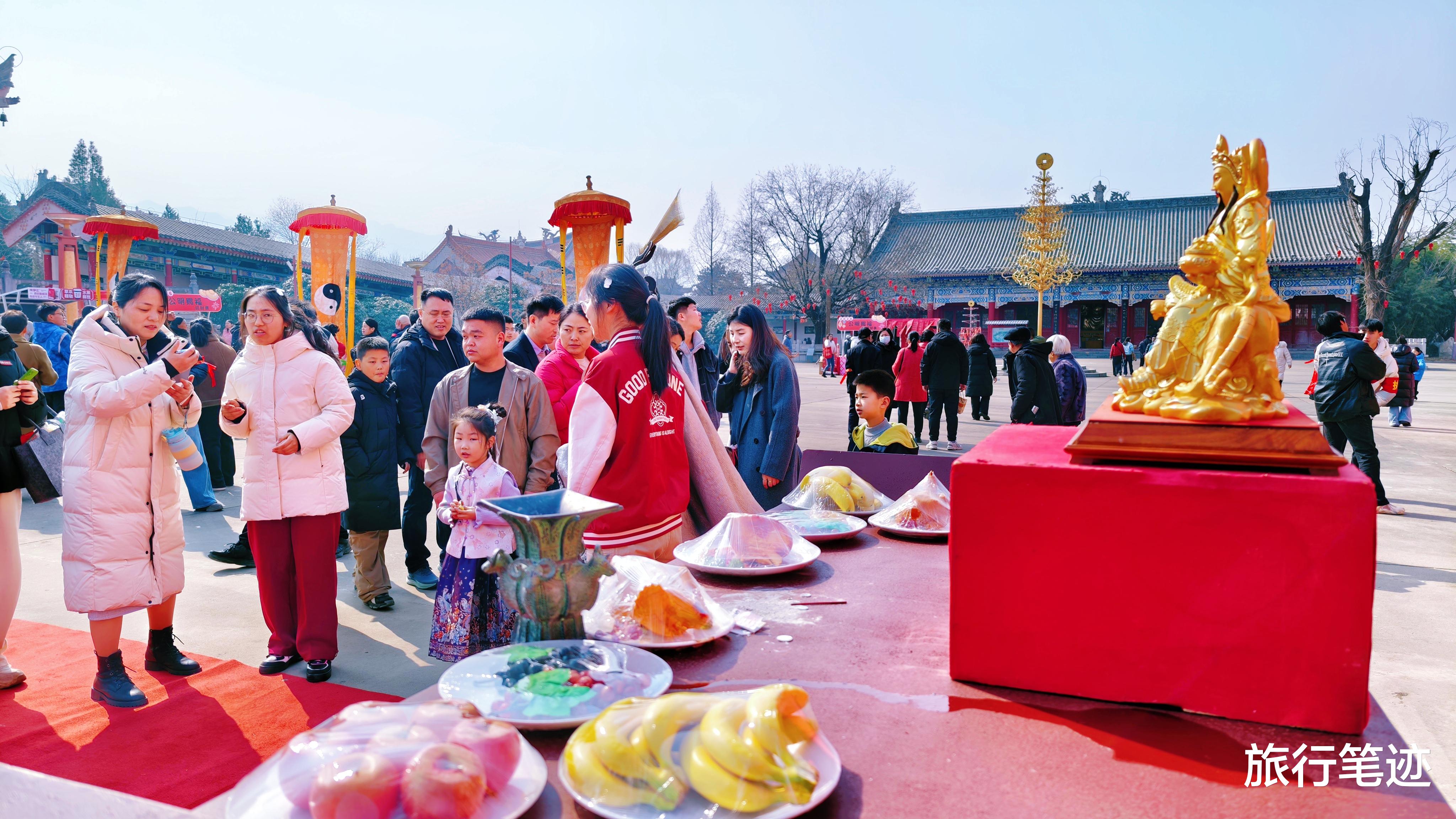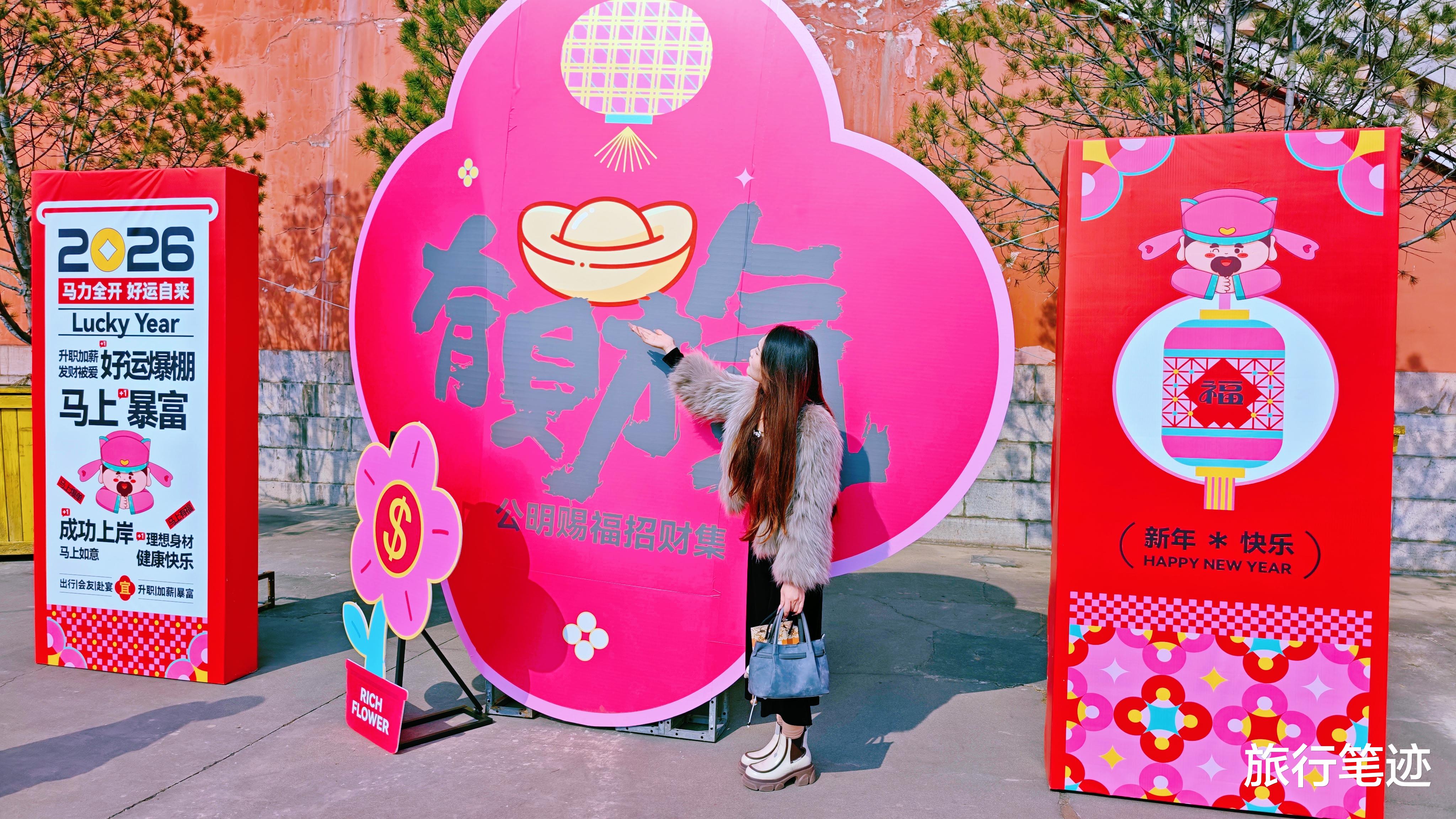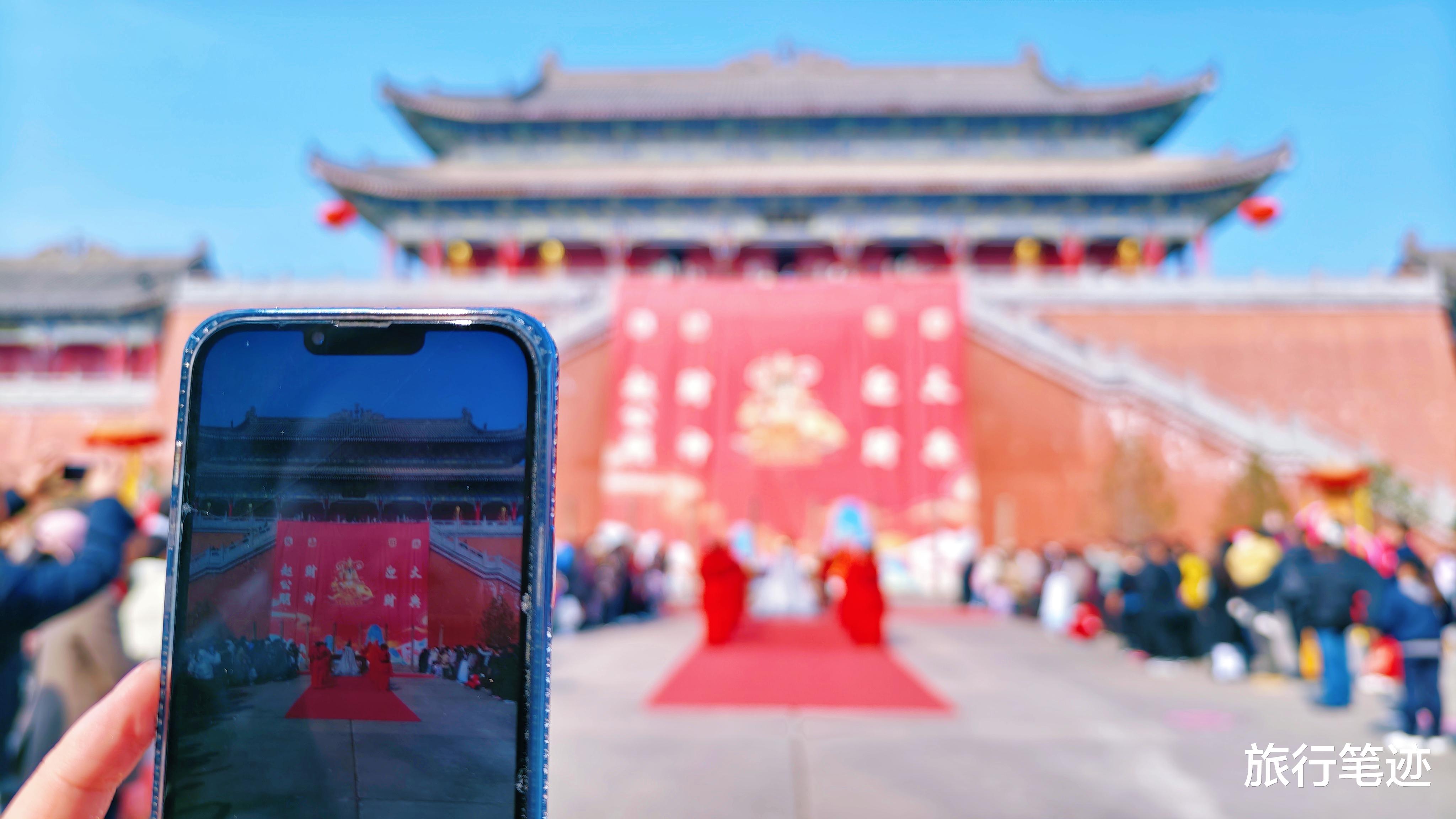 最不容错过的,当属景区的压轴大戏——《非遗迎财祈福仪式》。主礼官身着传统礼服,带领众人循古礼、行仪轨。浑厚大气的乐声中,庄重古朴的礼仪徐徐展开,端庄的舞者、虔诚的观众,共同绘就一幅“迎财纳福、美美与共”的新春长卷。那一刻,仿佛财气与福气真的随风而至,洒满每个人的肩头。而那些“迎财纳福NPC”更是萌态可掬——他们身着吉服,手持金元宝,沿途拱手送福,游客们争相合影、接福沾喜,笑声在人群中此起彼伏。