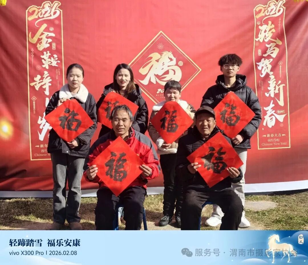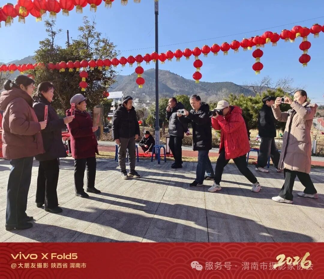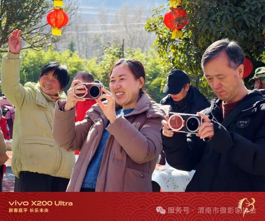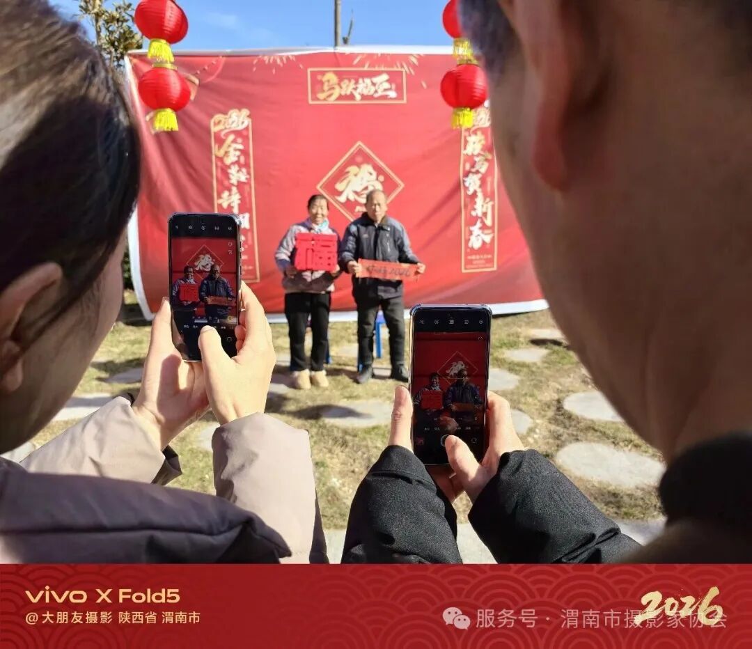 摄影师们精心构图、耐心引导,活动现场年味浓厚。村民们手持 “福” 字、春联等主题道具,在喜庆的背景前留下幸福合影。现场由vivo提供照片打印服务,让村民们当场就能拿到精美的合影照片,脸上洋溢着喜悦的笑容。