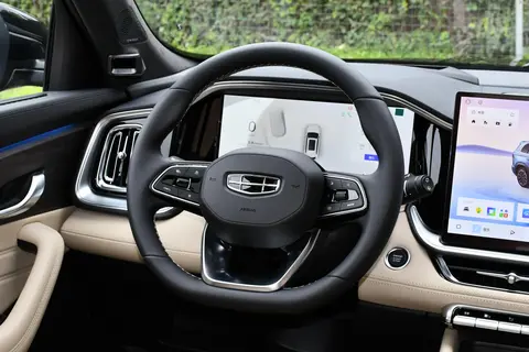 座舱智能的升级是星越L全新东方曜系列本次焕新的核心亮点之一,实际体验中能明显感受到科技与日常用车场景的深度融合。该车基于 GEEA3.0 电子电气架构打造的全景四屏智联交互系统,由 25.6 英寸全彩 HUD、12.3 英寸数字仪表与双 14.6 英寸高清大屏组成,屏幕边框做了收窄处理,视觉上更显精致。不过 25.6 英寸 HUD 的显示高度需要手动调节,不能根据座椅位置自动适配。更实用的是该系统的三指飞屏功能,导航时从中控屏一划就能传到仪表屏,比老款手动切换方便太多,而且副驾娱乐屏播放视频时也完全不会干扰主驾导航。车机系统方面,该车搭载的高通骁龙 8155 旗舰级芯片的算力支撑确实强悍,搭配与魅族深度定制的 Flyme Auto 系统,操作响应丝滑流畅,应用加载瞬间完成,彻底告别了老款偶尔卡顿的问题。不过车辆启动后,车机系统完全加载完成需要 30 秒左右,这期间无法使用导航和音乐功能,略显不便。另外,该车的语音交互的进步也很明显,支持复杂指令识别,像 “打开副驾座椅按摩并调低温度” 这样的组合指令,即便在开窗的嘈杂环境中也能准确执行。但如果指令里包含 “后排空调”,系统偶尔会混淆 “前排” 和 “后排”,需要重复指令。其FACE ID 驾驶员感知系统表现不错,可以在上车后自动认证身份并联动调节座椅位置,识别速度约 2 秒,不过戴帽子或眼镜时,识别成功率会下降,需摘下眼镜才能准确认证;AR 实景导航在复杂立交桥场景中堪称神器,车道级指引比老款平面导航直观太多,彻底解决了找路难的问题,但在光线不足的隧道里,实景画面会模糊,只能依赖常规导航。