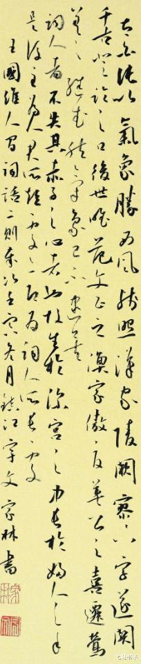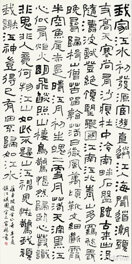 经过数十年的笔墨积淀,他逐渐打破了以往柔媚唯美小行书单一的书体局限,在小字展大和墨色变化上实现了重大突破,解决了大字的线质和草书的来源问题,出现了大草、隶书、行书大字作品,作品多了一些怀素的纵逸与苍茫,又融入江南烟水的清新,形成了“清新典雅、稳帖端雅、春风大雅”的独特风格。