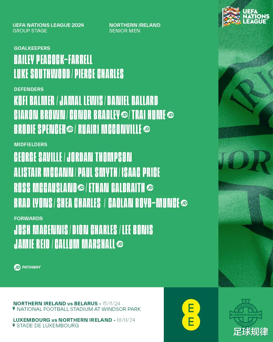 11月19日3:45,欧洲国家联赛第六轮,已经降级的卢森堡将在卢森堡城迎战小组第一的北爱尔兰。