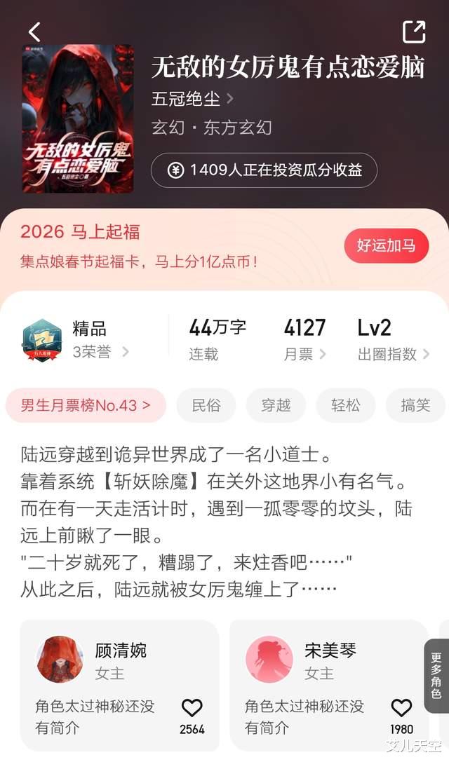 14、《无敌的女厉鬼有点恋爱脑》44万字连载中