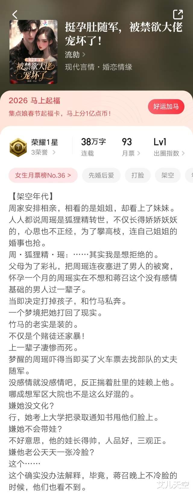 5、《挺孕肚随军,被禁欲大佬宠坏了》38万字连载中