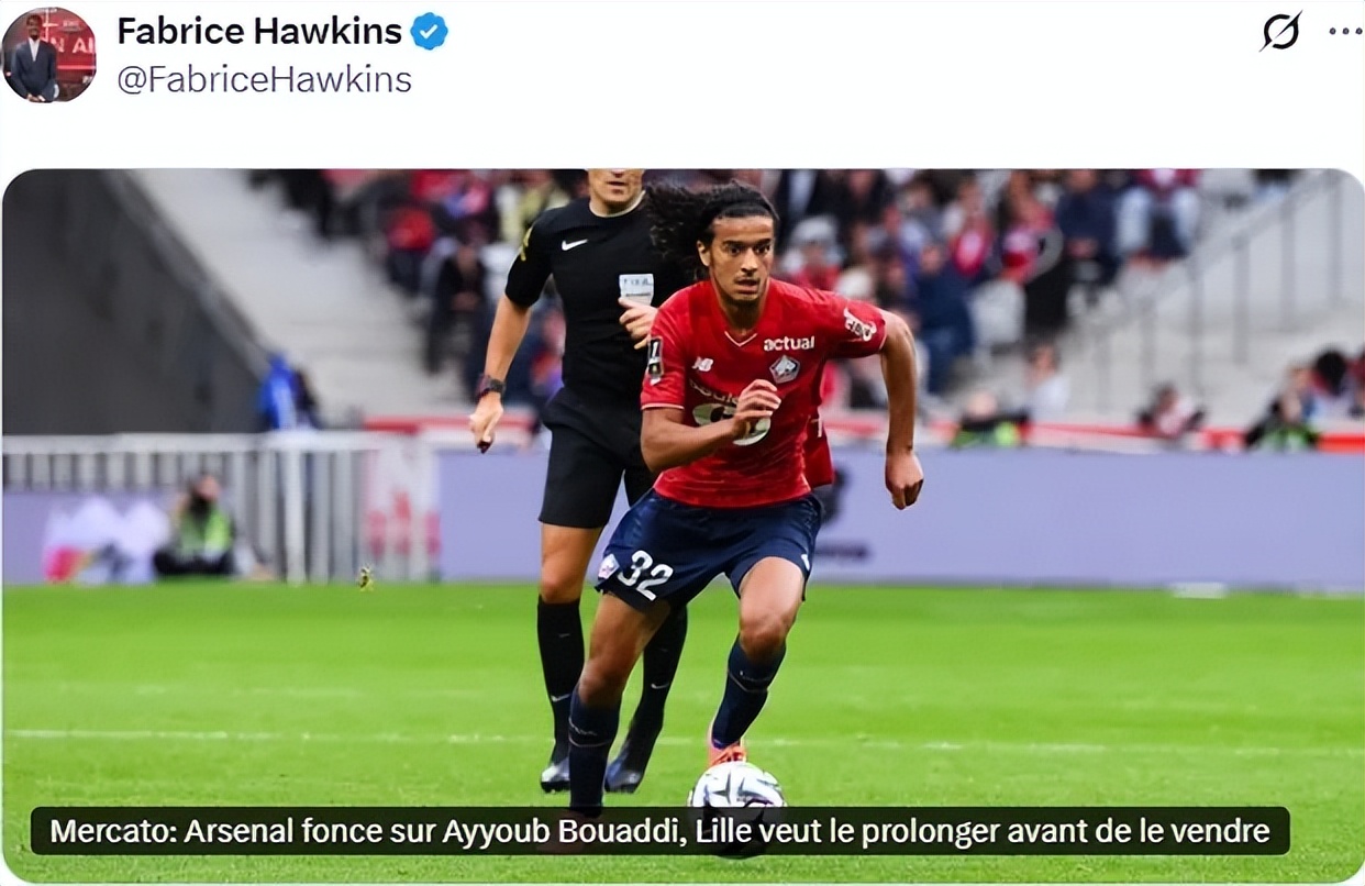 不过这个新闻出来没几个小时,里尔就官宣和布阿迪续约到了2029年……但这不意味着文章说的阿森纳感兴趣是假的,续约也可以买。而且罗马诺在推文里也确认阿森纳对布阿迪感兴趣,非常有潜力的中场,18岁身价已经3000万欧元。