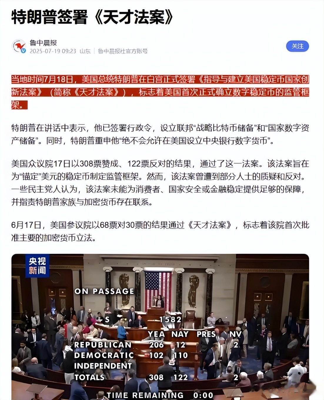 在双方共同推动之下,在7月份将《天才法案》推出。这个方案最核心的内容其实就是推动加密货币在市场的运行。
