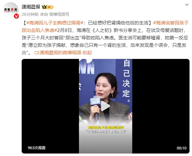 到了医院,医生做完检查后,一句轻飘飘的话,却让她瞬间坠入谷底:“孩子的肾可能有问题,情况不太好,后续可能需要做肾移植”。海清说,她当时根本没敢细想,也没考虑自己的身体,更没想起可以找孩子爸爸或者其他人帮忙,第一反应就是:“我捐,我把我的肾捐给孩子”。