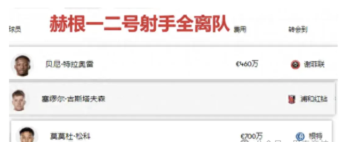 尽管赫根也投入不少资金进行了及时补充,但对于锋线的补充少之又少,重心都放在了中场以及后场的防线上。