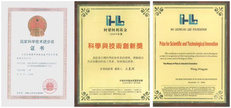 圣奥化学期间,王农跃带领团队在橡胶防老剂领域持续攻坚。2004年,这项凝聚着智慧与汗水的创新成果荣获中国石化联合会科技进步一等奖;2005年,荣获国家科学技术进步二等奖;2006年,荣获何梁何利基金科学与技术创新奖,这份由香港爱国金融家设立的奖项,堪称中国科技领域的“诺贝尔奖”,获奖者如袁隆平、彭士禄、戚发轫、钟南山、施一公等,皆为各自领域的泰斗或者两院院士。