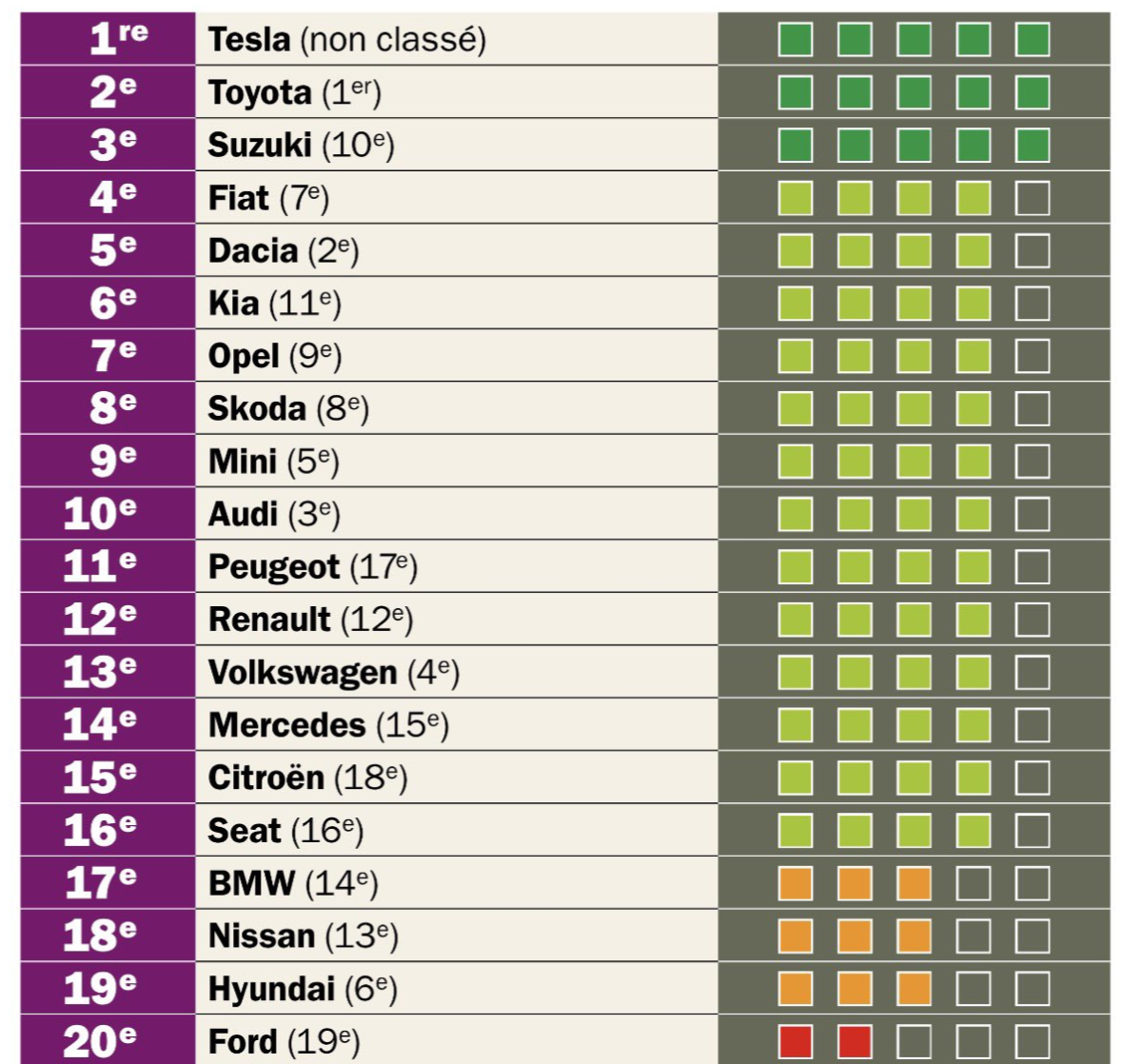 Auto Plus 说明,这个结果象征着电动车技术已步入成熟期。 随着特斯拉在欧洲工厂产能与质量控管的提升,丰田维持数十年的耐神话正面临前所未有的挑战。 但是,虽然这份排名证明了特斯拉的可靠性很高,但这并不代表所有电动车牌都是如此,各位可以从排名看到丰田和铃木还是分居第二和第三名。