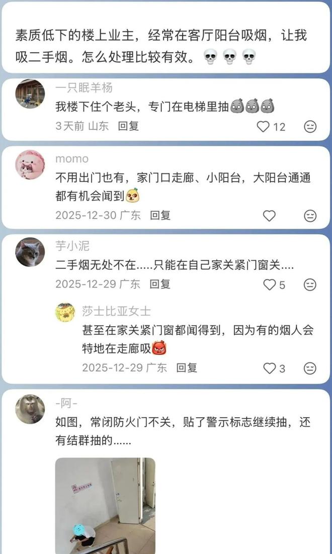 居民楼抽烟属于投诉重灾区,就算是关好门窗,在无孔不入的二手烟面前,也是形同虚设的。