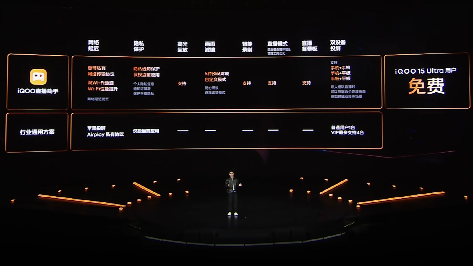 直播体验层面,iQOO 15 Ultra支持抖音一键投屏开播,在众多投屏直播场景下拥有高清稳定的体验,七大头部手游能提供144帧持久稳帧直播,是游戏主播值得信赖的开播利器。