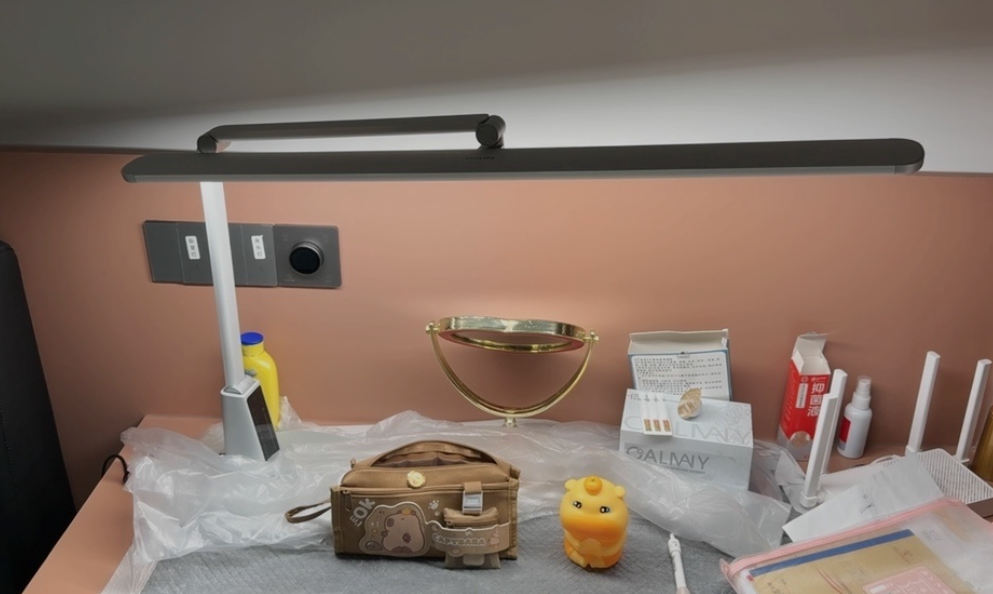 无可视频闪危害,搭配60cm长形发光面,覆盖1.2米书桌,减少照明死角,光线柔和不伤眼。