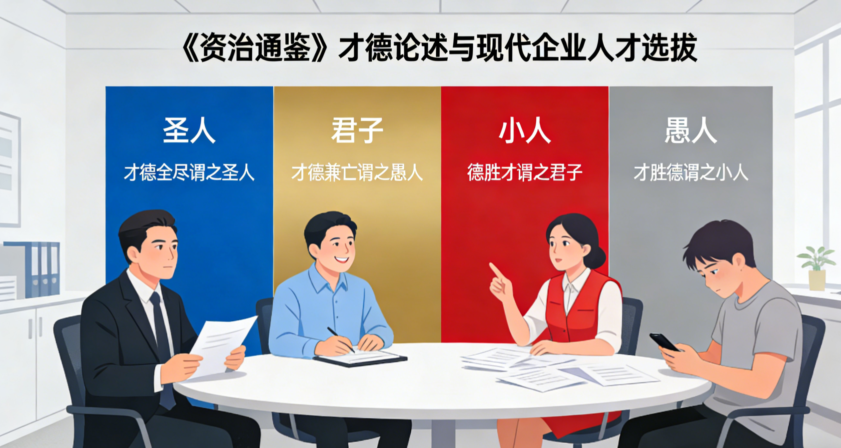 《资治通鉴》中对才德有着深刻的阐述:“才者,德之资也;德者,才之帅也。” 才,是德的辅助;德,是才的统帅。古人将人分为四类:“才德全尽谓之圣人,才德兼亡谓之愚人,德胜才谓之君子,才胜德谓之小人。”