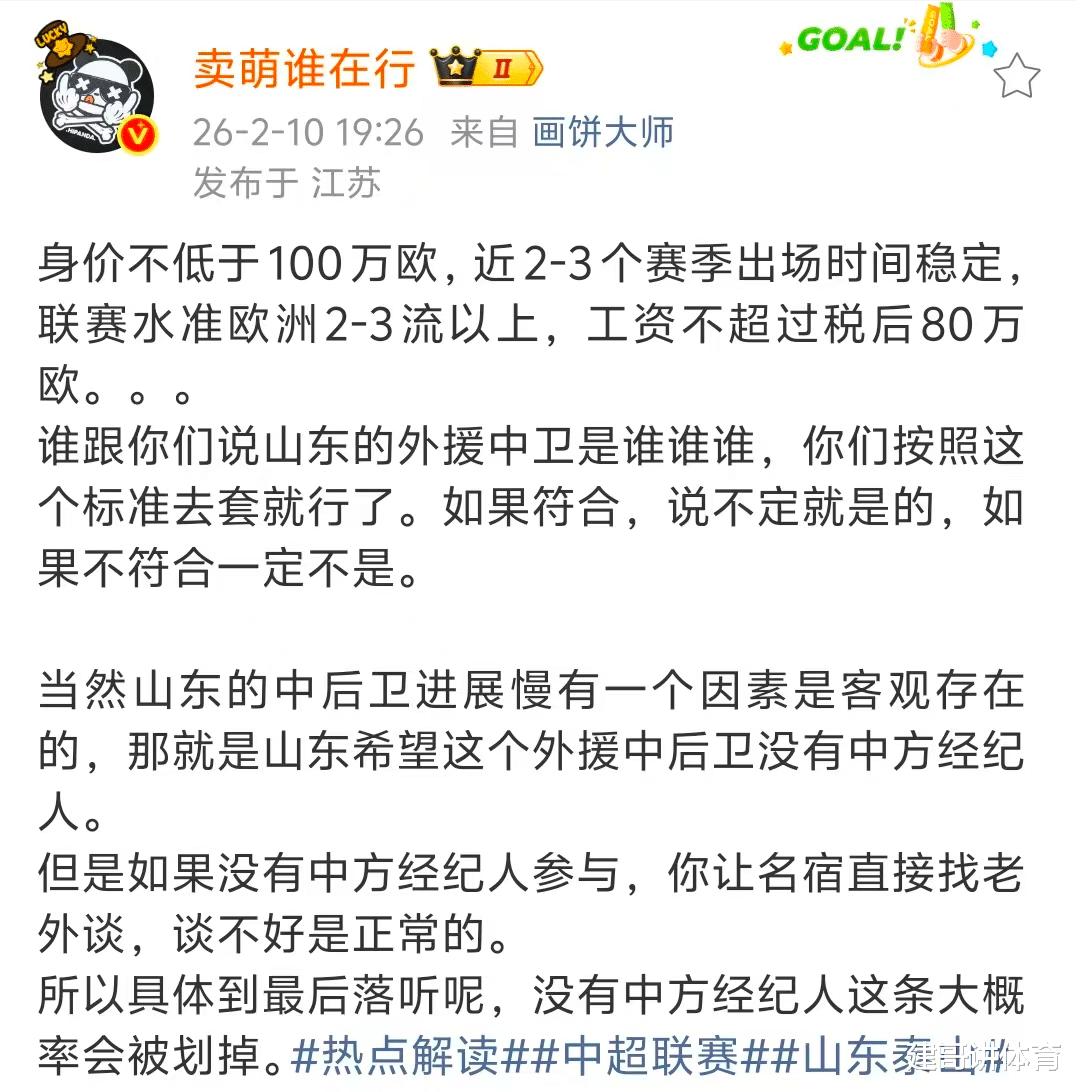 北京时间2月10日,在中超冬窗月底就要关闭的时候,考虑到这个冬窗转会期还有一个春节假期,这样的情况下,让一直没有确定外援中卫的山东泰山队,在操作外援中卫的过程中,已经没有了太多的容错空间,当外界传闻的泰山队的绯闻外援中卫达到了几十人后,北京名记袁野在今天给泰山球迷带来了一个好消息,这个好消息就是泰山队已经完成了外援中卫的签约事宜。