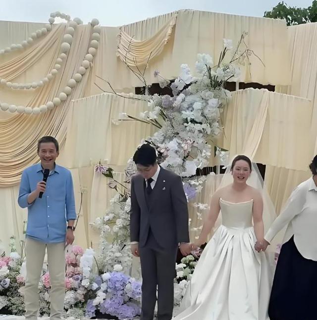 没有任何的明星包袱,和亲朋好友们一起为这对新婚夫妻送上祝福。