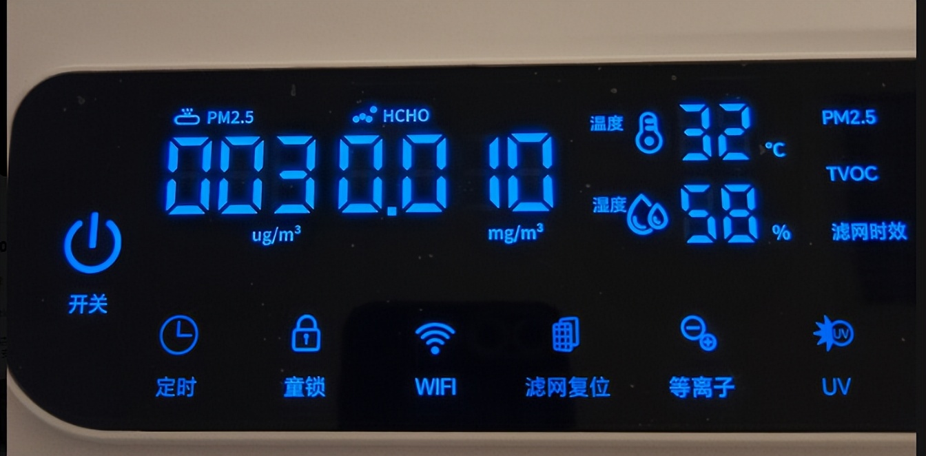 新颐 A8 机身正面搭载高清 LED 五维监测屏,覆盖家庭最关注的五大核心指标,每一项数据都经过第三方权威校准,误差率<3%,比单独购买的便携式检测仪更靠谱: