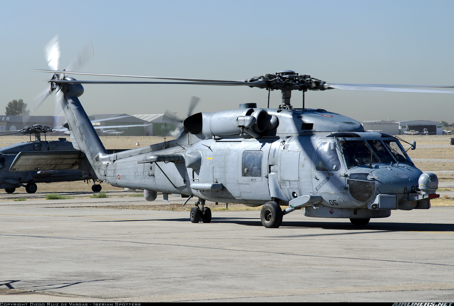 黑鹰直升机,长15.26米、旋翼直径16.36米,空重5.3吨,最大起飞重量9.98吨,以两台通用T700-GE-701D涡轴发动机为动力,最大平飞速度296公里每小时/160节,巡航速度268公里每小时/145节。标准航程592公里或者是320海里。内部载荷1.2~1.45吨,外部吊挂4.082吨。